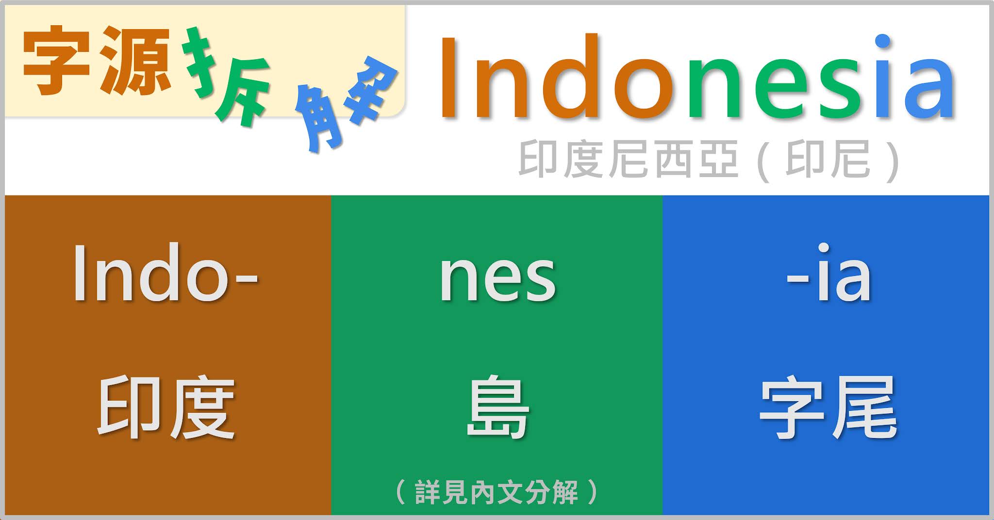印尼(印度尼西亞)的國名 Indonesia,其字源及意義如下: